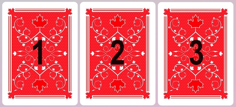 La lectura comienza con la carta de la izquierda, luego con la carta del centro, y finalmente con la carta de la derecha, tal como muestra el esquema de más abajo.
